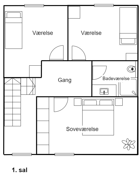 Plantegning 1. sal, enkelte boliger er spejlvendt