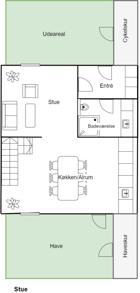 Plantegning stueetagen, enkelte boliger er spejlvendt